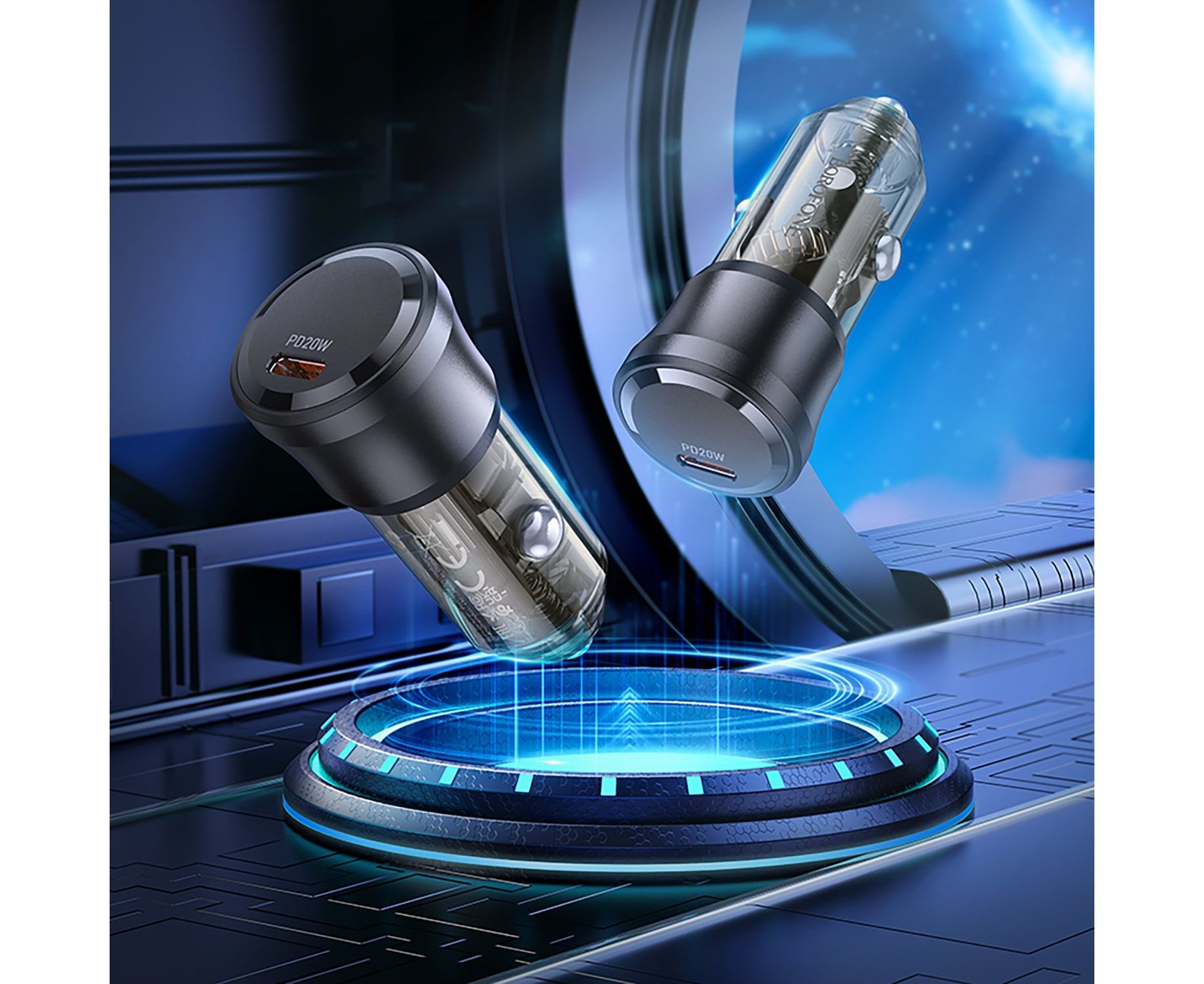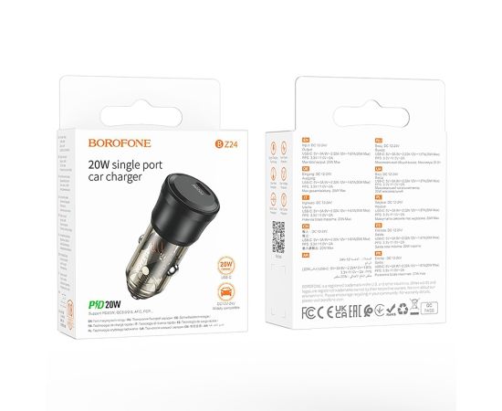 Адаптер Автомобильный Borofone BZ24 Clever PD20W (transparent black) (225105)
