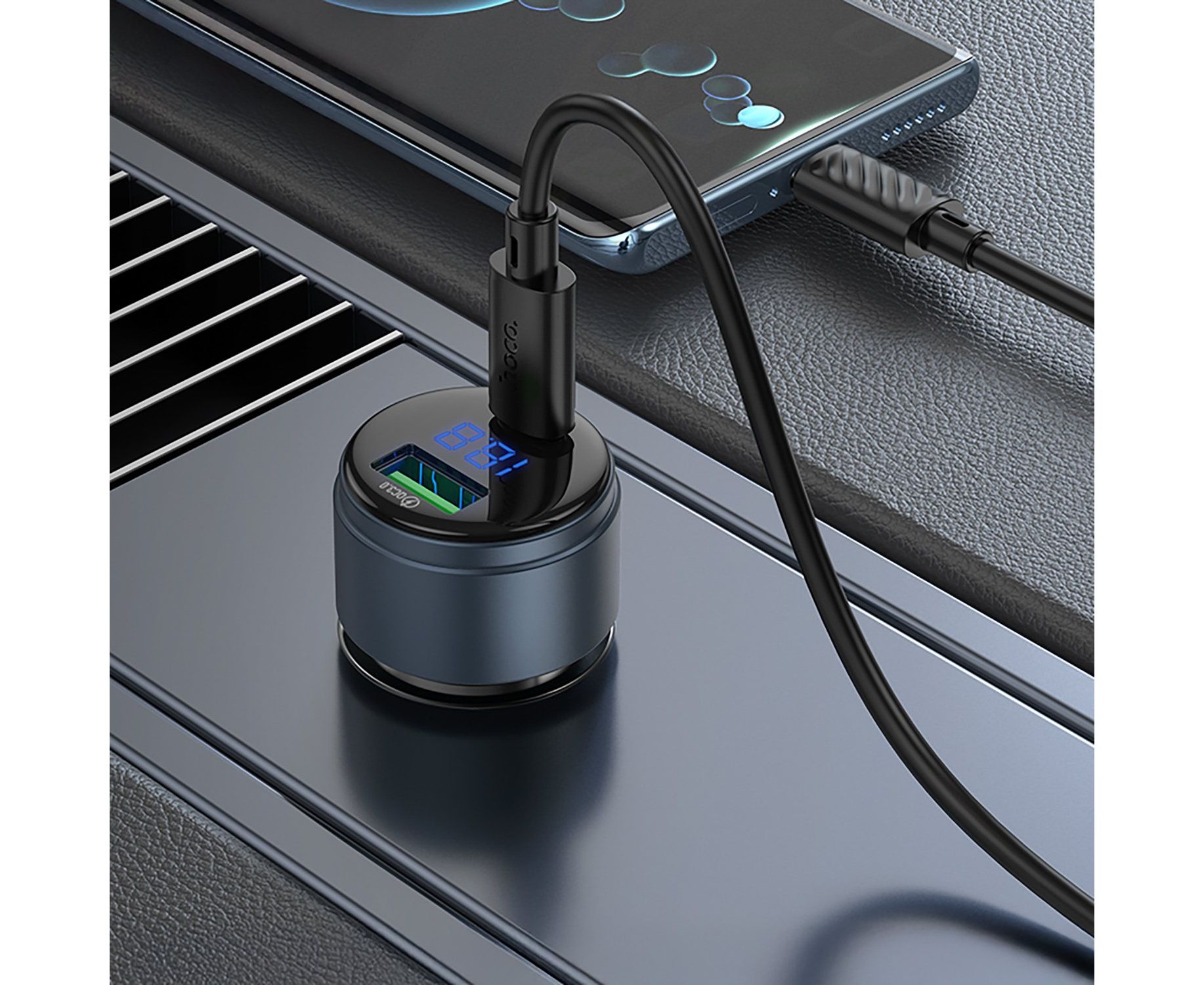Адаптер Автомобильный Hoco Z57B Glorious PD63W+QC3.0 (metal gray) (236202)