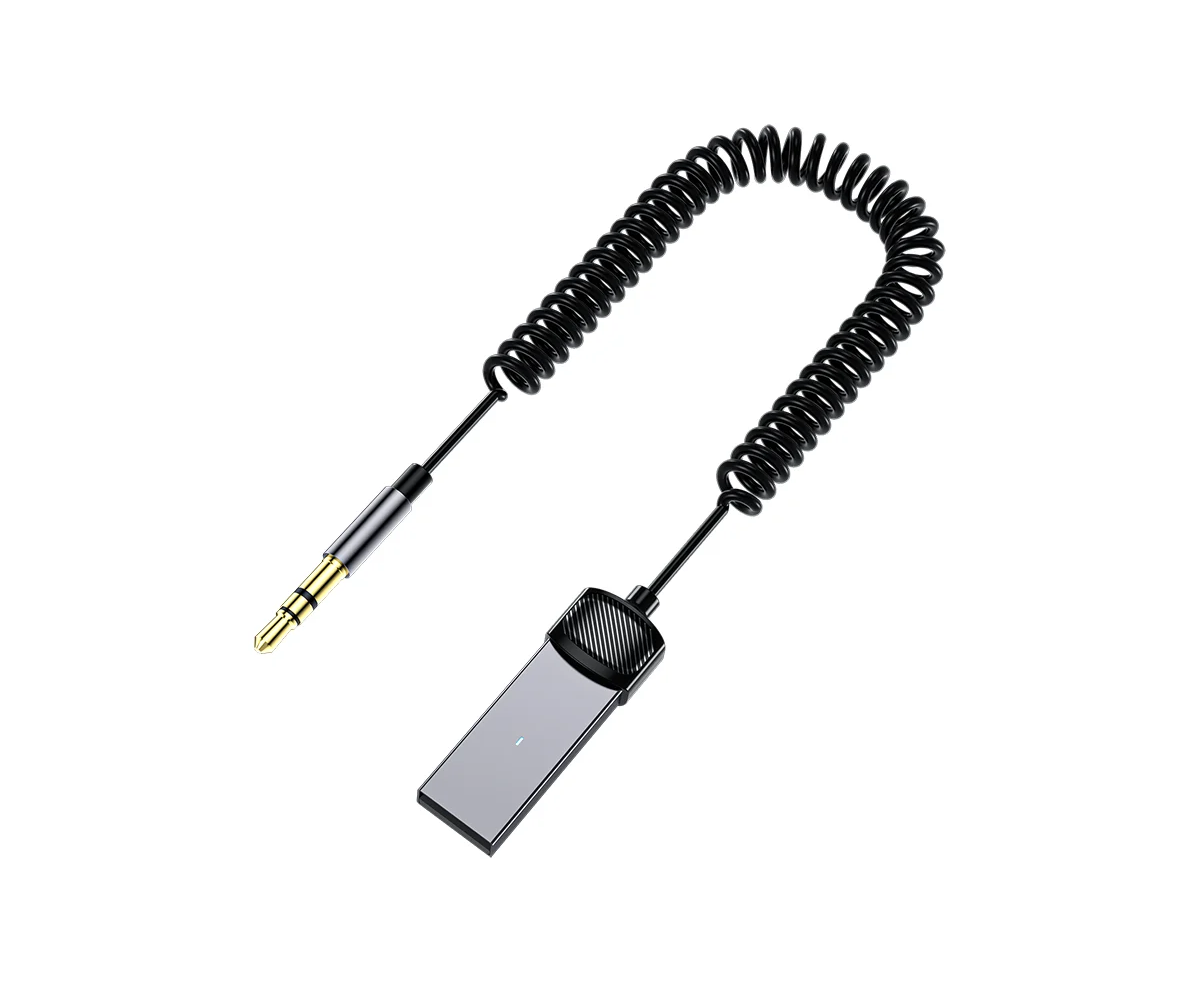 На одном конце адаптера располагается коннектор 3.5 мм mini jack для подключения к аудио разъему на магнитоле. На другом конце – USB-А. Между собой они соединены витым кабелем. Для передачи сигнала используется Bluetooth 5.0.