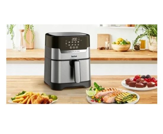 Аэрофритюрница TEFAL Easy Fry&Grill Deluxe EY505D15 имеет серебристый и черный цвет, что делает ее стильной и современной.