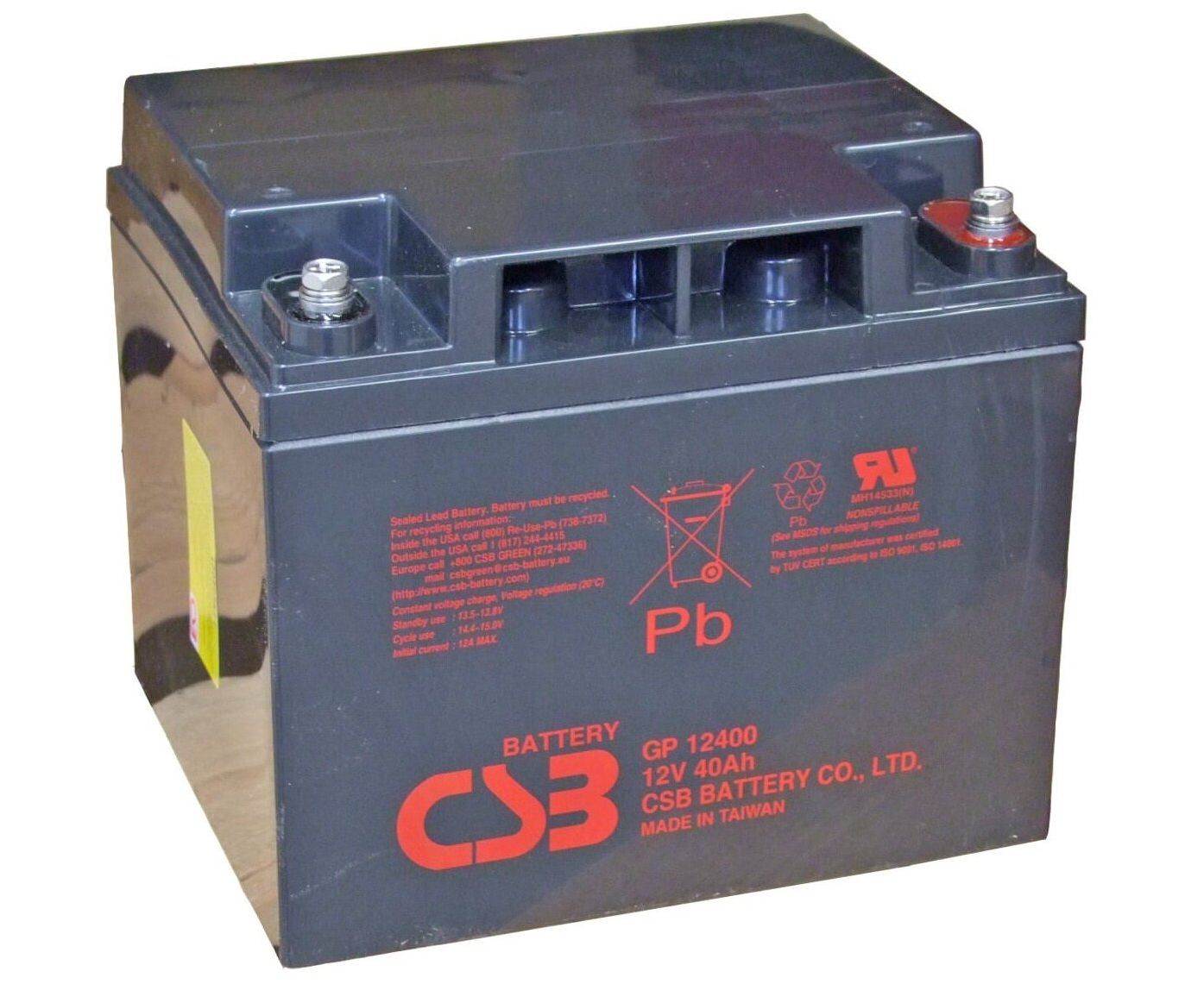 АКБ для ИБП 12В 40Ач CSB GP12400, 160W/cell, 480 Whr, 12.65 кг, (ШхГхВ) 197х165х170,4 мм (170,4 с клеммами)