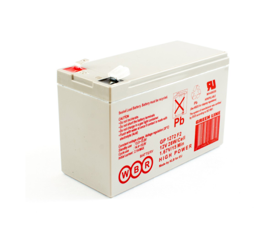 АКБ для ИБП 12В 7.2Ач WBR GP1272 F2, 28W/cell, 86 Whr, 2.2 кг, (ШхГхВ) 151х65х94 мм (102 с клеммами)