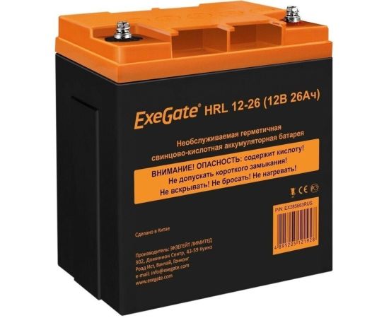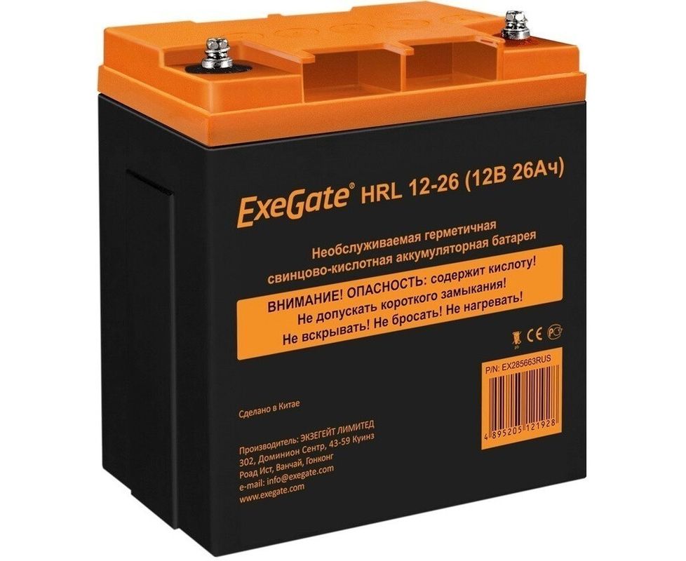 АКБ для ИБП Exegate HRL 12-26 (EX285663RUS) 12V 26Ah, клеммы F3 болт М5 с гайкой