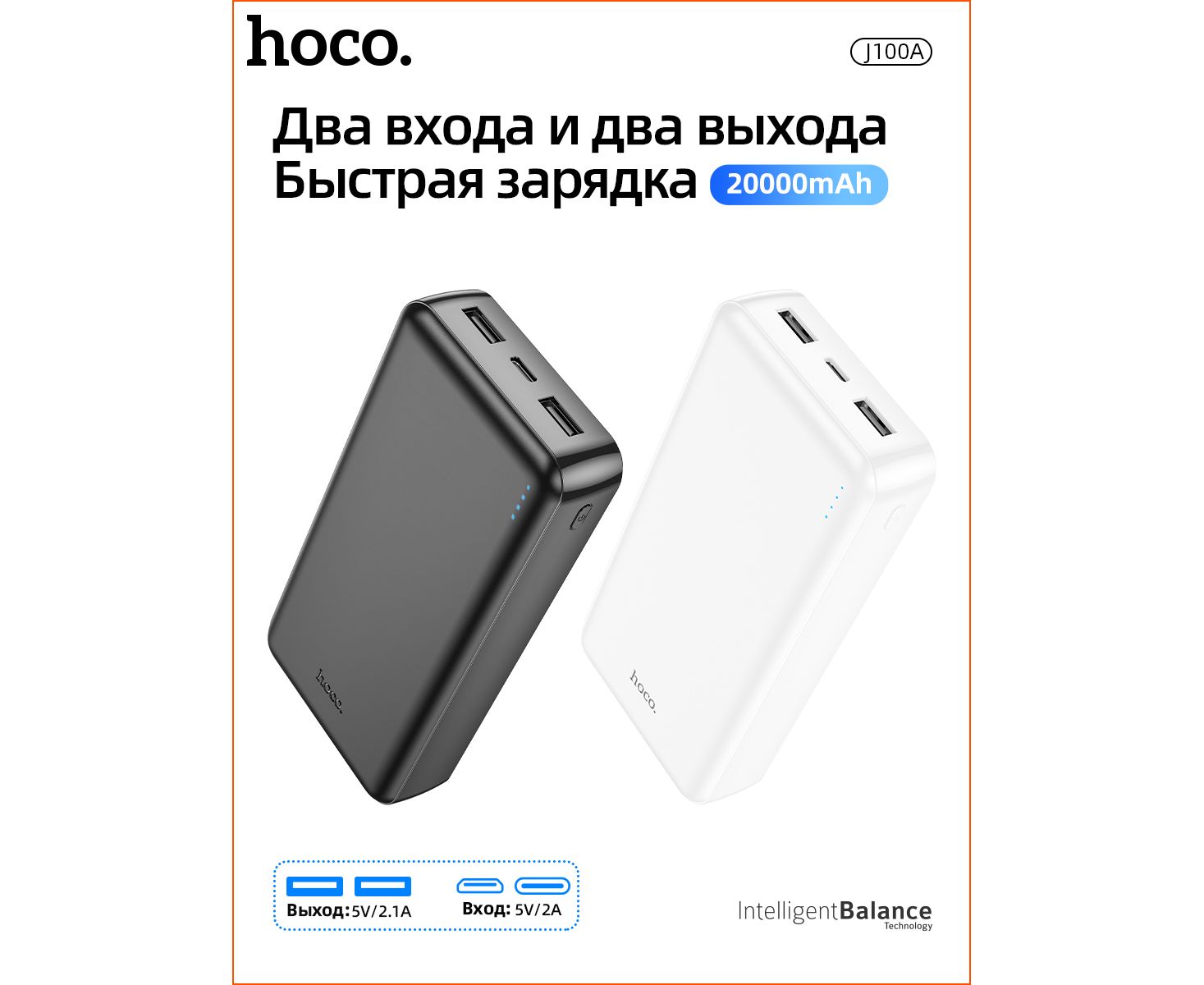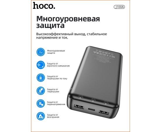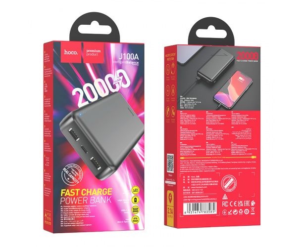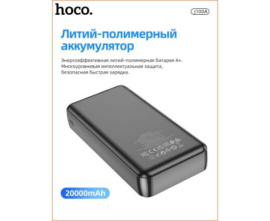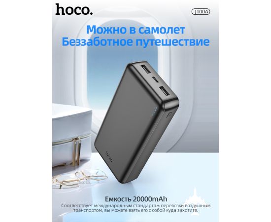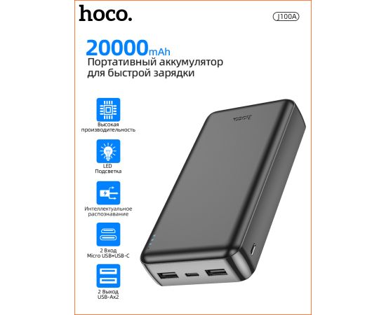 Аккумулятор внешний резервный HOCO J100А High-ranking 20000 mAh (чёрный)