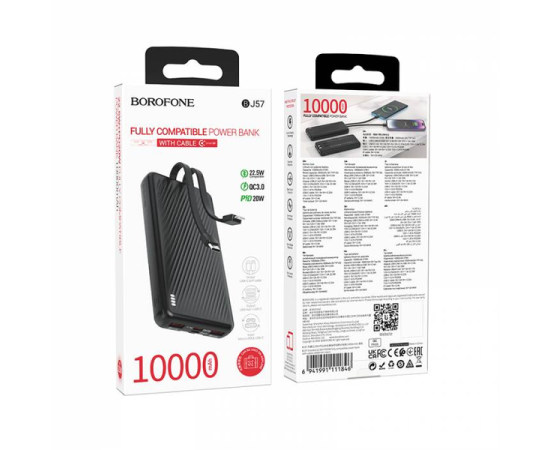 Аккумулятор внешний резервный BOROFONE BJ57 Graceful 22.5W+PD20W fully compatible with cable(10000mAh) черный