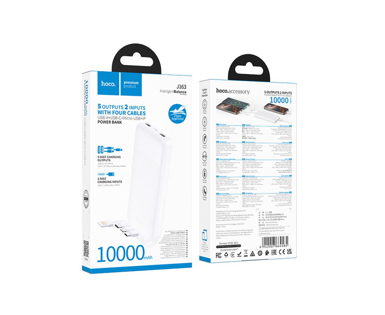 Аккумулятор внешний резервный HOCO J163 Wonderful with 4 cables 10000mAh белый