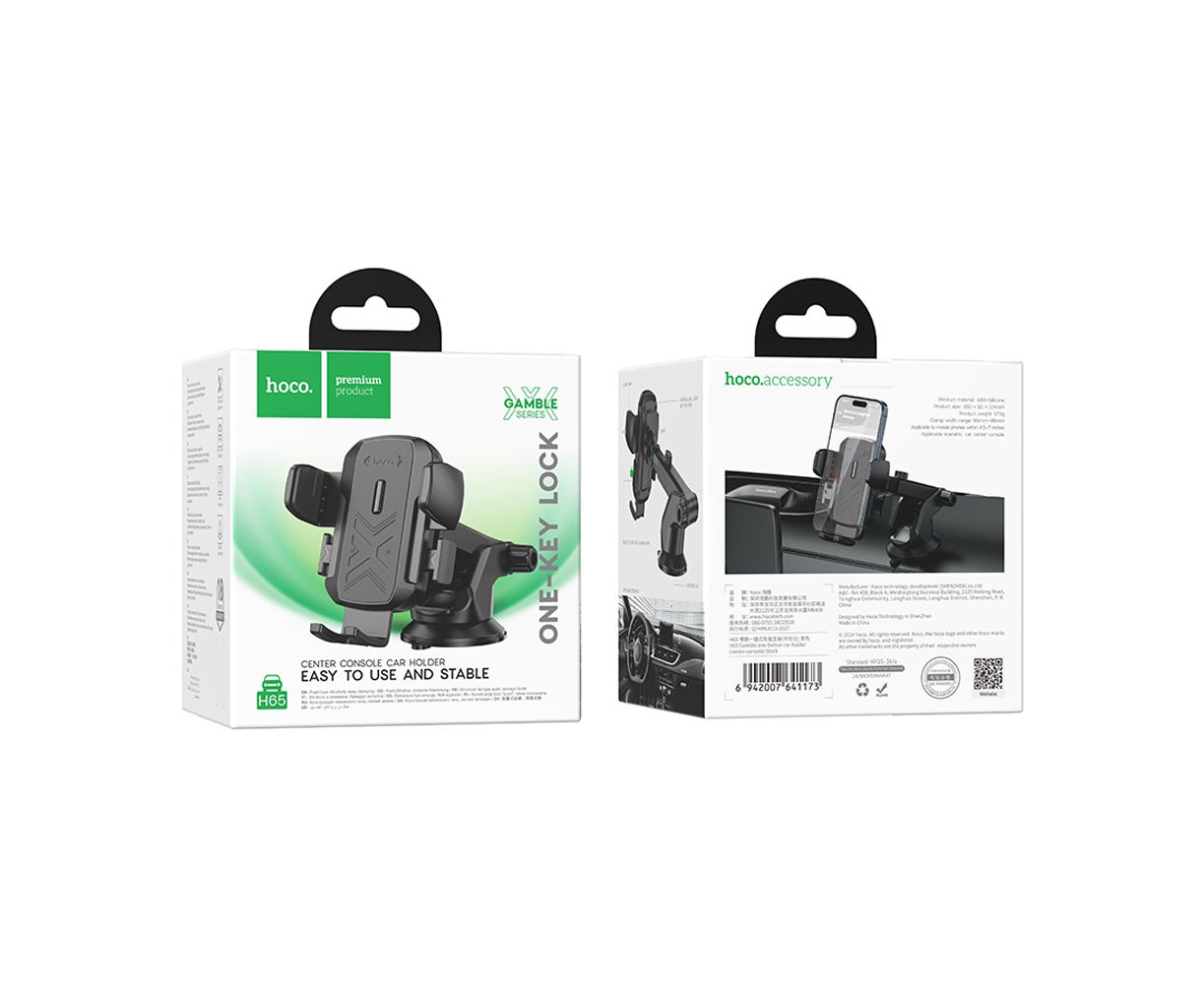 Автомобильный держатель HOCO H65 Gamble one-button car holdercenter console black