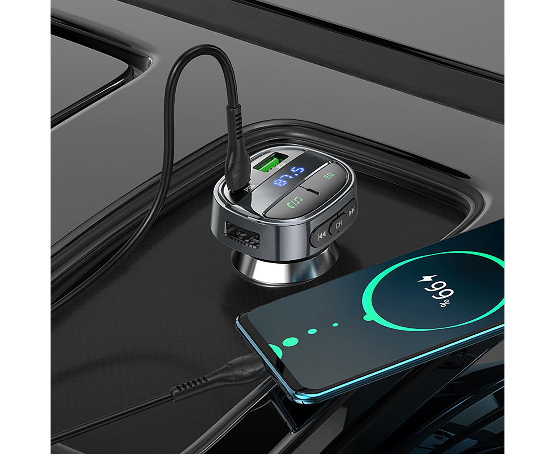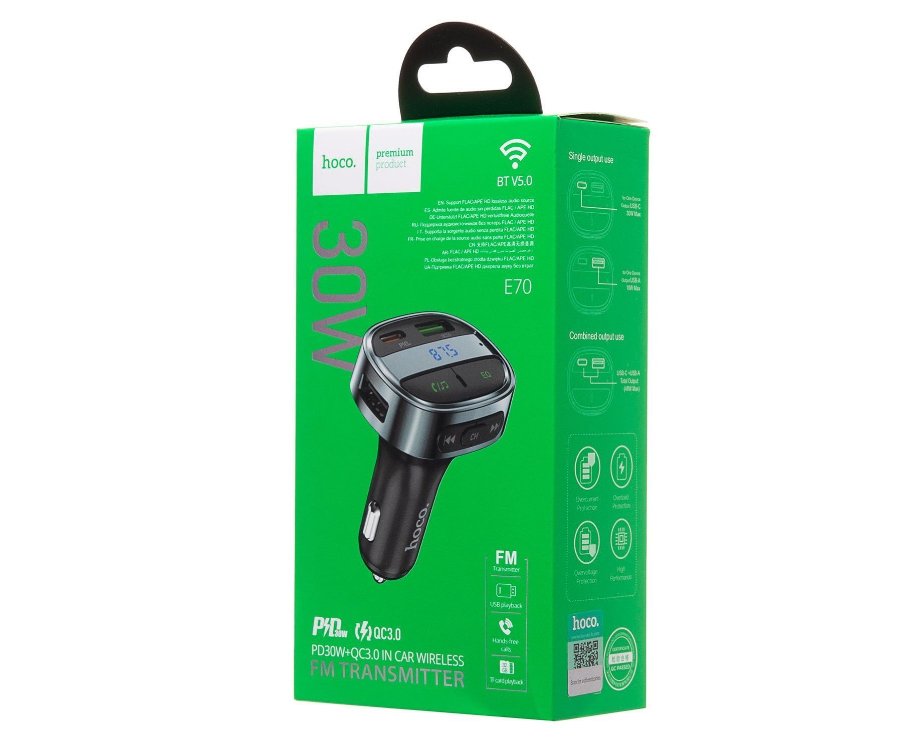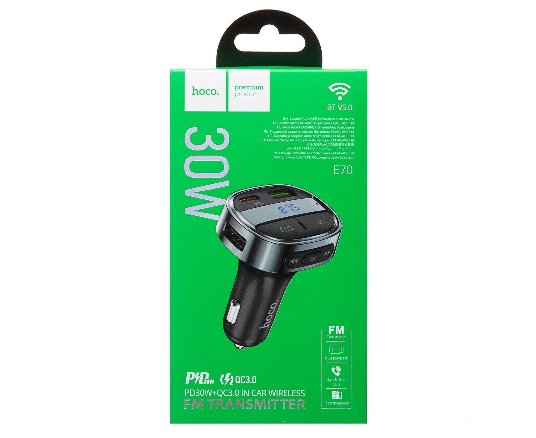 Автомобильный FM-трансмиттер Hoco E70 BT PD QC 30W (black) (207598)