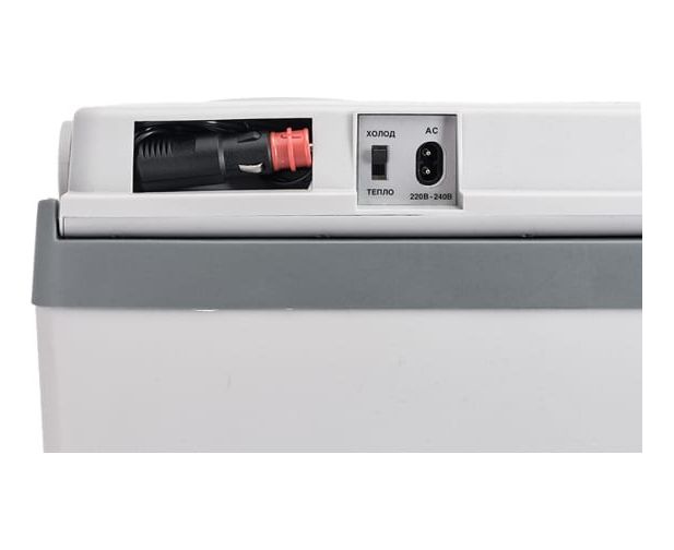 Холодильник может питаться от сети переменного тока (AC, 220 В) или от бортовой сети автомобиля (DC, 12 В). Все необходимые кабели входят в комплект поставки, длина – 1.8 метра. Для хранения неиспользуемого провода имеется специальный отсек в крышке холодильника.