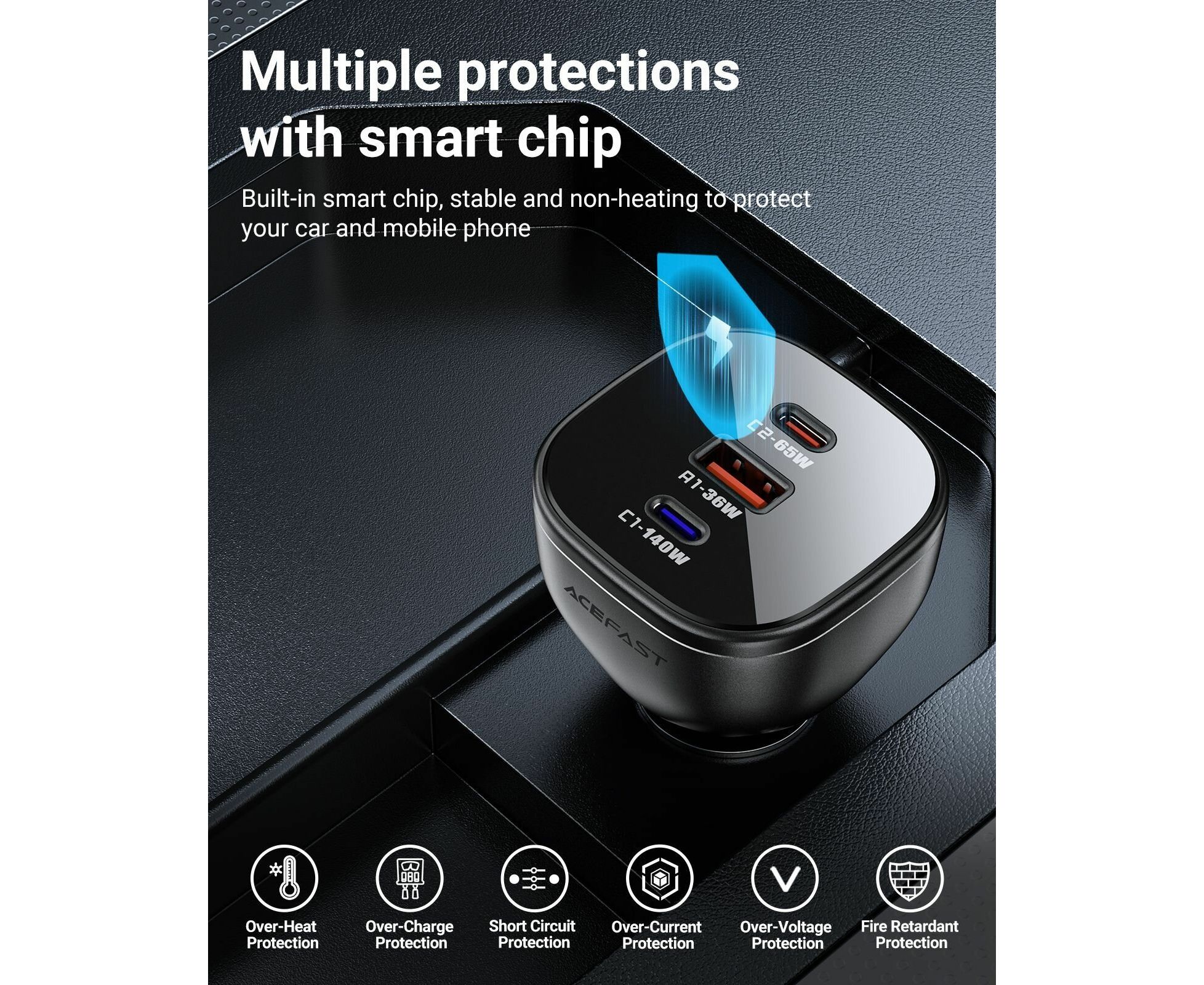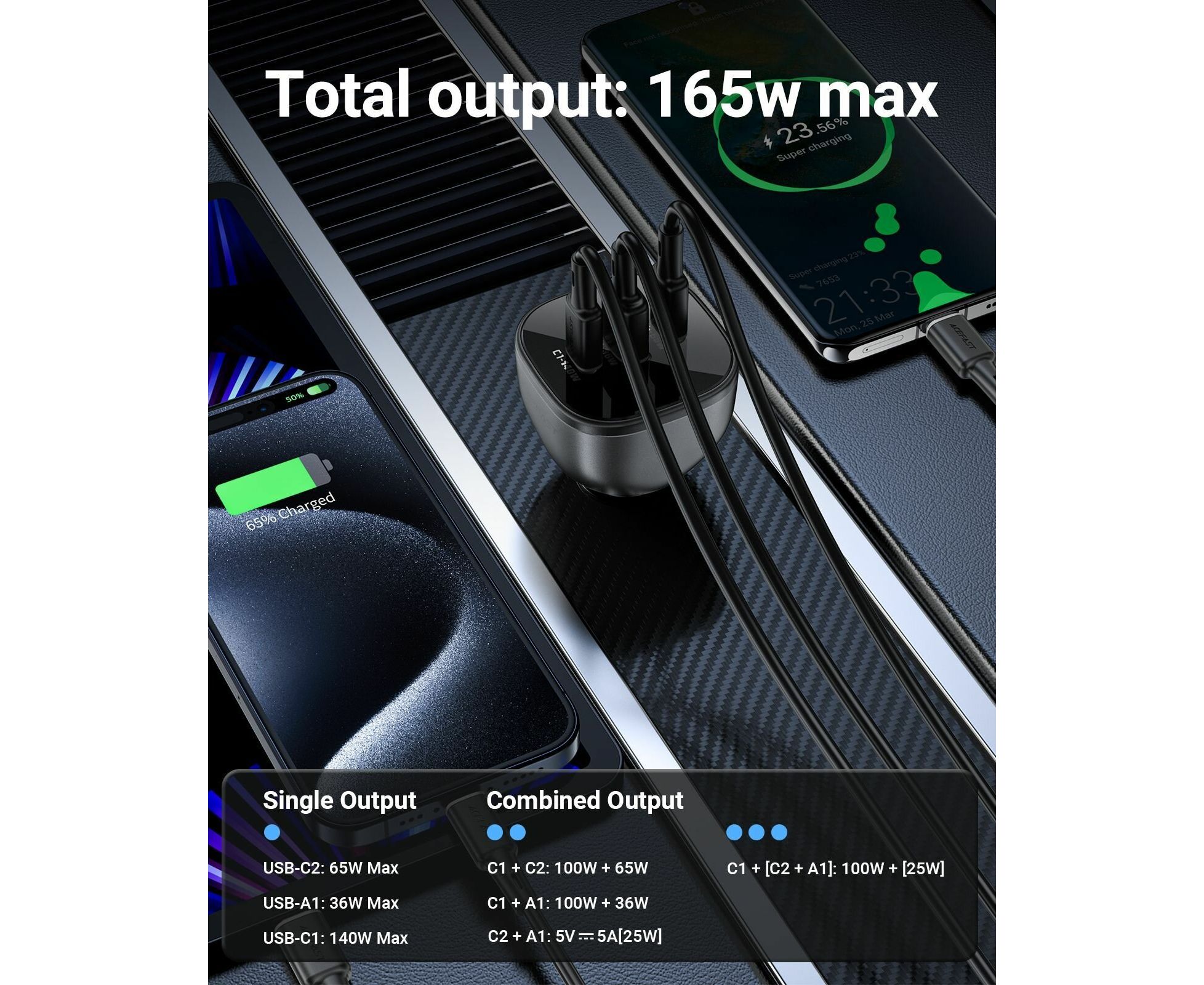 АЗУ ACEFAST B14 165W (2*USB-C+USB-A) 3-port car charger,black