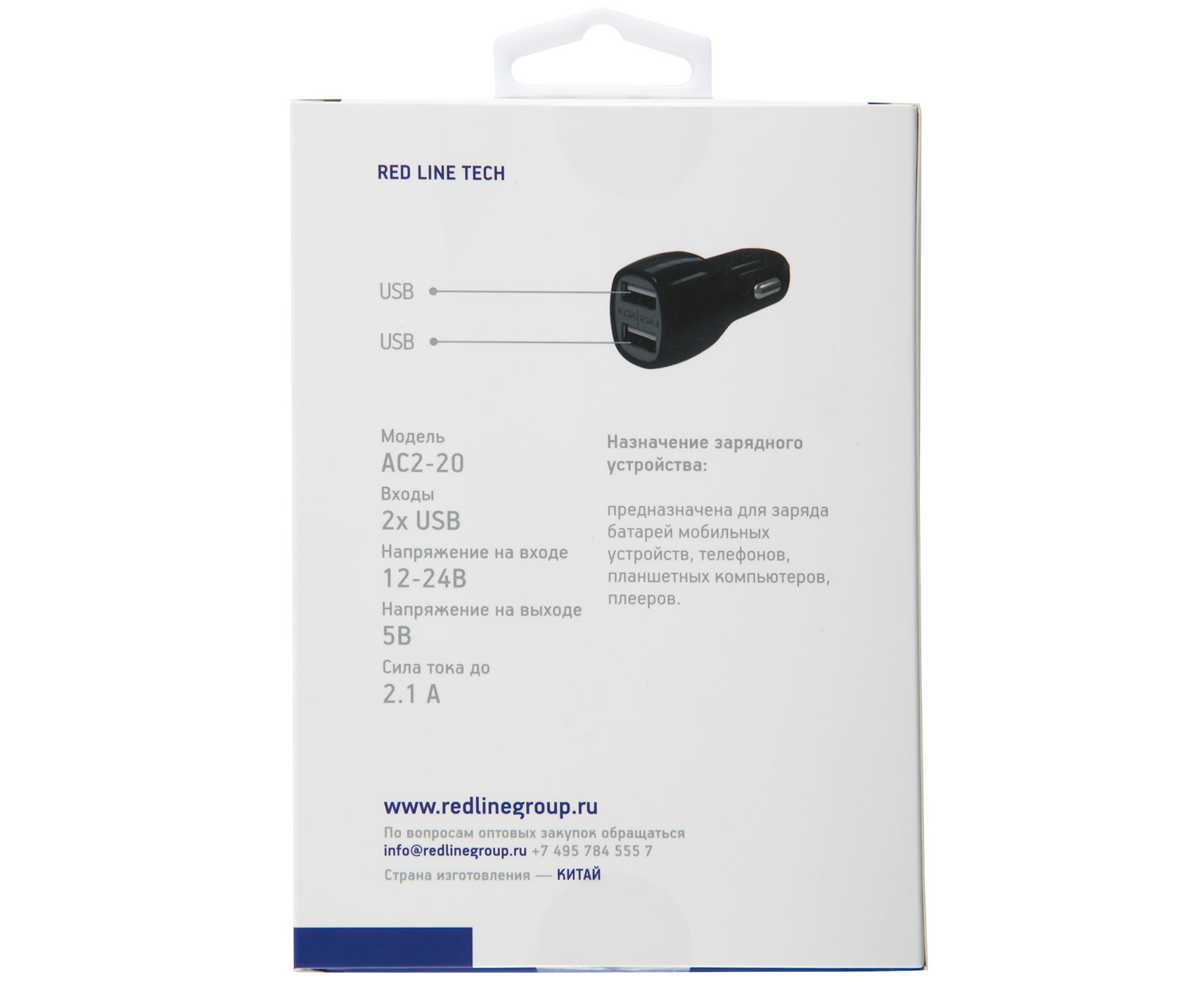 АЗУ Red Line Tech 2 USB (модель AC2-20), черный