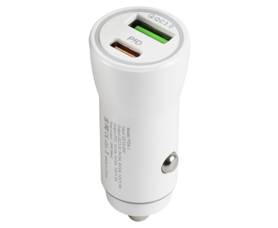 Автомобильное зарядное устройство Red Line Tech USB QС 3.0 18W + USB Type-C PD18W PDA-1 White в белом цвете ставится в прикуриватель автомобиля. Оно подходит для взаимодействия с разными смартфонами, планшетами и другими устройствами с использованием соответствующего провода. Зарядка выполнена в минималистичном дизайне, поэтому она не выделяется в автомобильном салоне. Напряжение - 12 В. Выходной ток составляет 3 А. Возможна одновременная зарядка двух гаджетов.