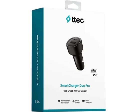 АЗУ TTEC 2CKP02S SmartCharger Duo PD 48W Car Fast Charger USB-C + USB-A Black