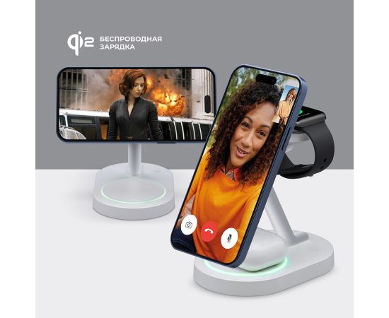 Беспроводная зарядная станция 3 в 1 MagSafe QI2 NEO, белый, Deppa