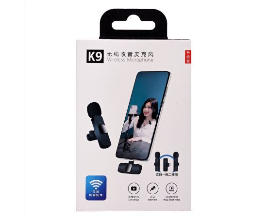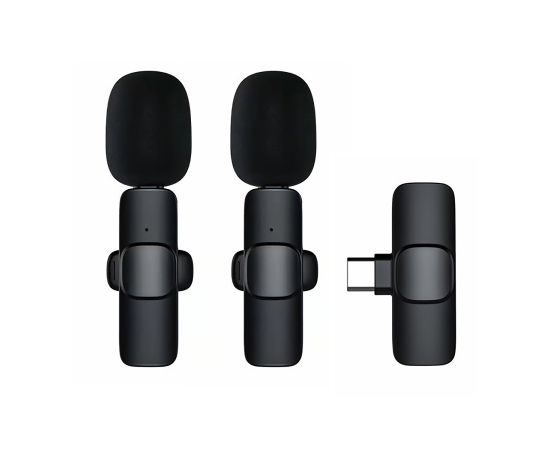 Беспроводной Микрофон петличка - K9 двойной с прищепкой для телефона, Type-C (black) (209933)