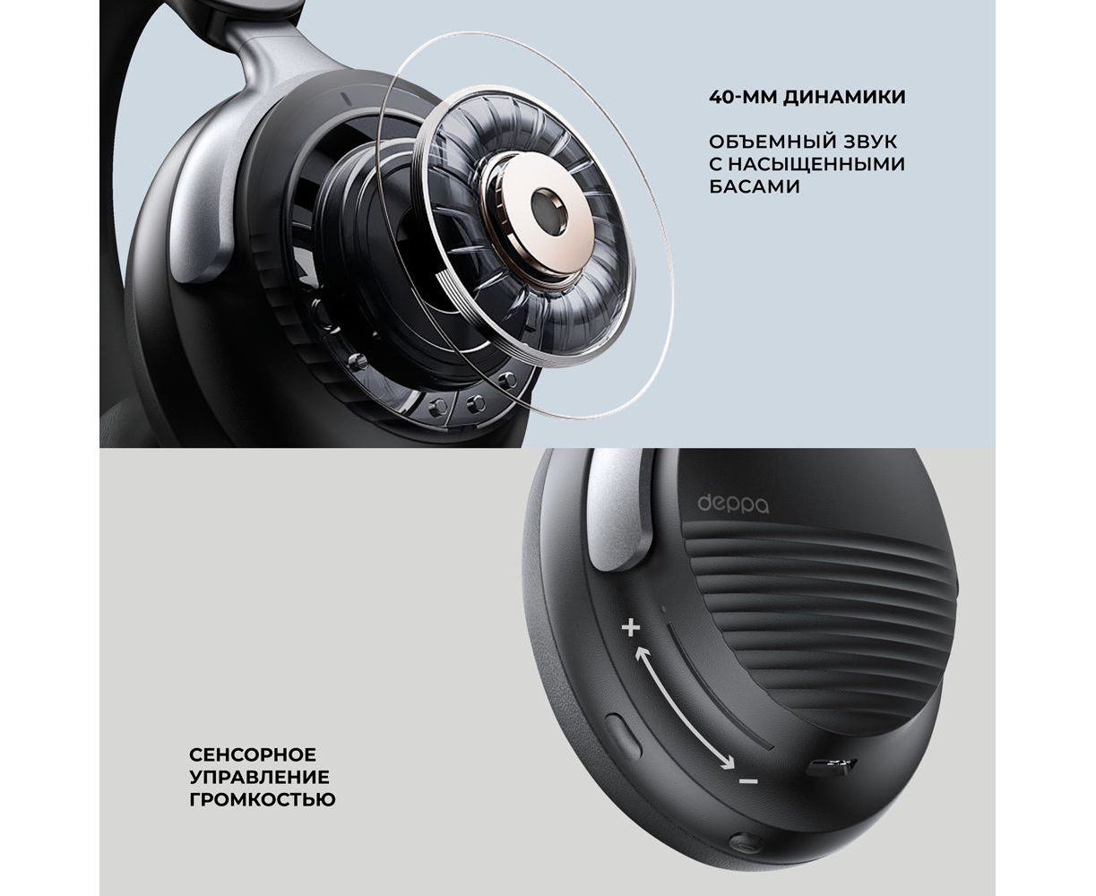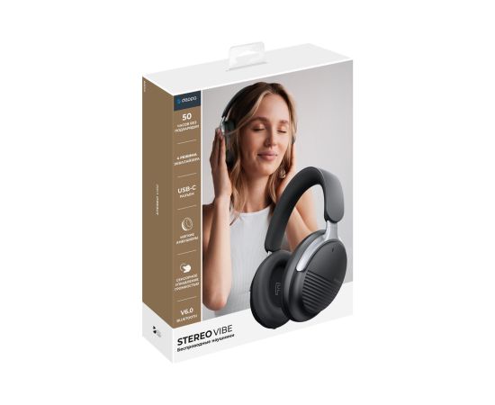 Беспроводные накладные наушники Stereo Vibe, BT 5.4, 400 мАч, черный, Deppa