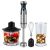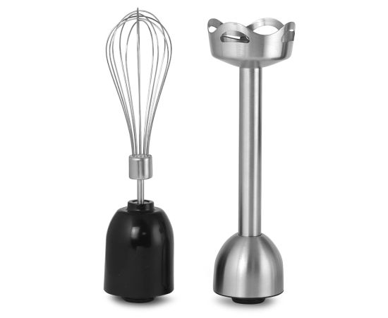 Комплектация блок электродвигателя, насадка-блендер, насадка-венчик, держатель насадки-венчика, нож-измельчитель, чаша измельчителя, стакан для смешивания, инструкция, гарантийный талон