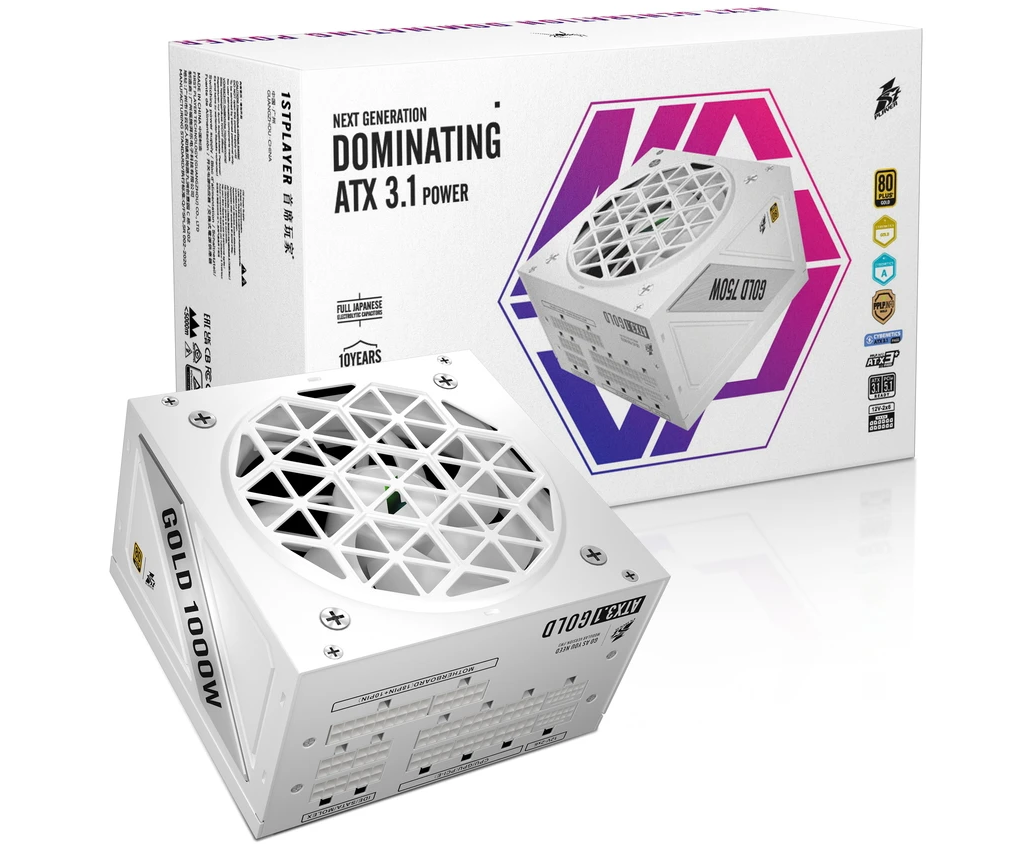 Блок питания 1STPLAYER NGDP Gold 1000W White (HA-1000BA4-WH)/ATX 3.1, APFC, 80 Plus Gold, LLC+DC-DC, full Japan solid-state caps, 120mm, full modular