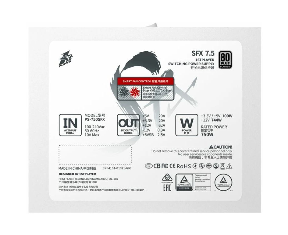 Блок питания 1STPLAYER SFX 750W Platinum White (PS-750SFX-WH) / SFX, APFC, 80 Plus Platinum, LLC+DC-DC, 80mm fan, full modular