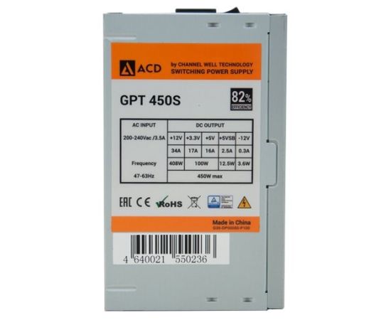 Блок питания ACD GPT450S (GPT-450S) 450W, 82% (max 85%), 120mm FAN, OEM без кабеля