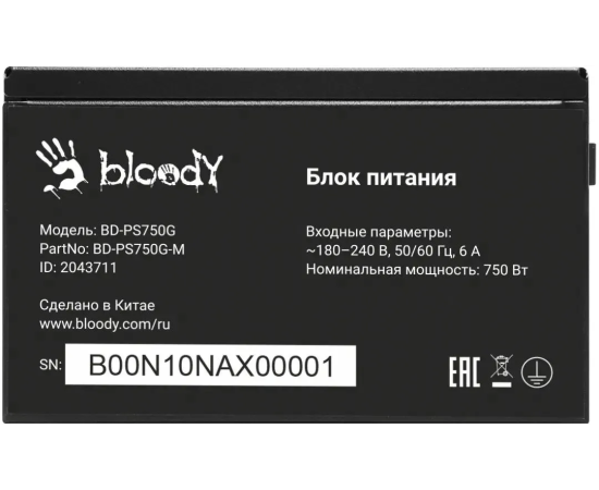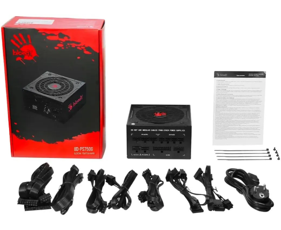 Блок питания BLOODY BD-PS750G (BD-PS750G-M), 750Вт, 120мм, черный, retail