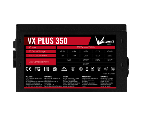 Блок питания FORMULA VX Plus 350 350W (4711401661610) (ATX, 20+4 pin, 2xSATA, 2хMolex, 1хFDD, 12cm fan)