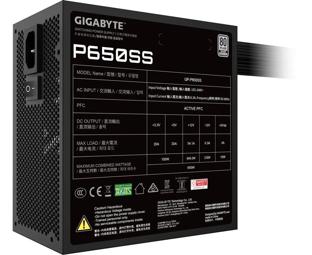 Блок питания Gigabyte GP-P650SS (28200-P65SB-1EUR) ATX 650W 80+ silver (20+4pin) APFC 120mm fan 5xSATA RTL