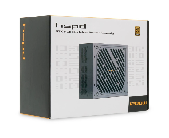 Блок питания HSPD HST-1200GF-BK 1200W 80+ Gold (ATX, 2.52, Full modular, 1x24(20+4)pin 600mm, 2xCPU 8(4+4)pin 700mm, 2xPCIe*2 8(6+2)pin