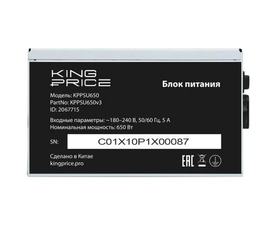 Блок питания KINGPRICE KPPSU650 (KPPSU650V3), 650Вт, 120мм, серый