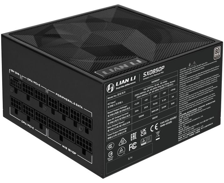 Блок питания LIAN LI SX, 850W, 80+ Platinum, ATX 3.1 (SX0850P) (G9P.SX0850P.B000.RU)