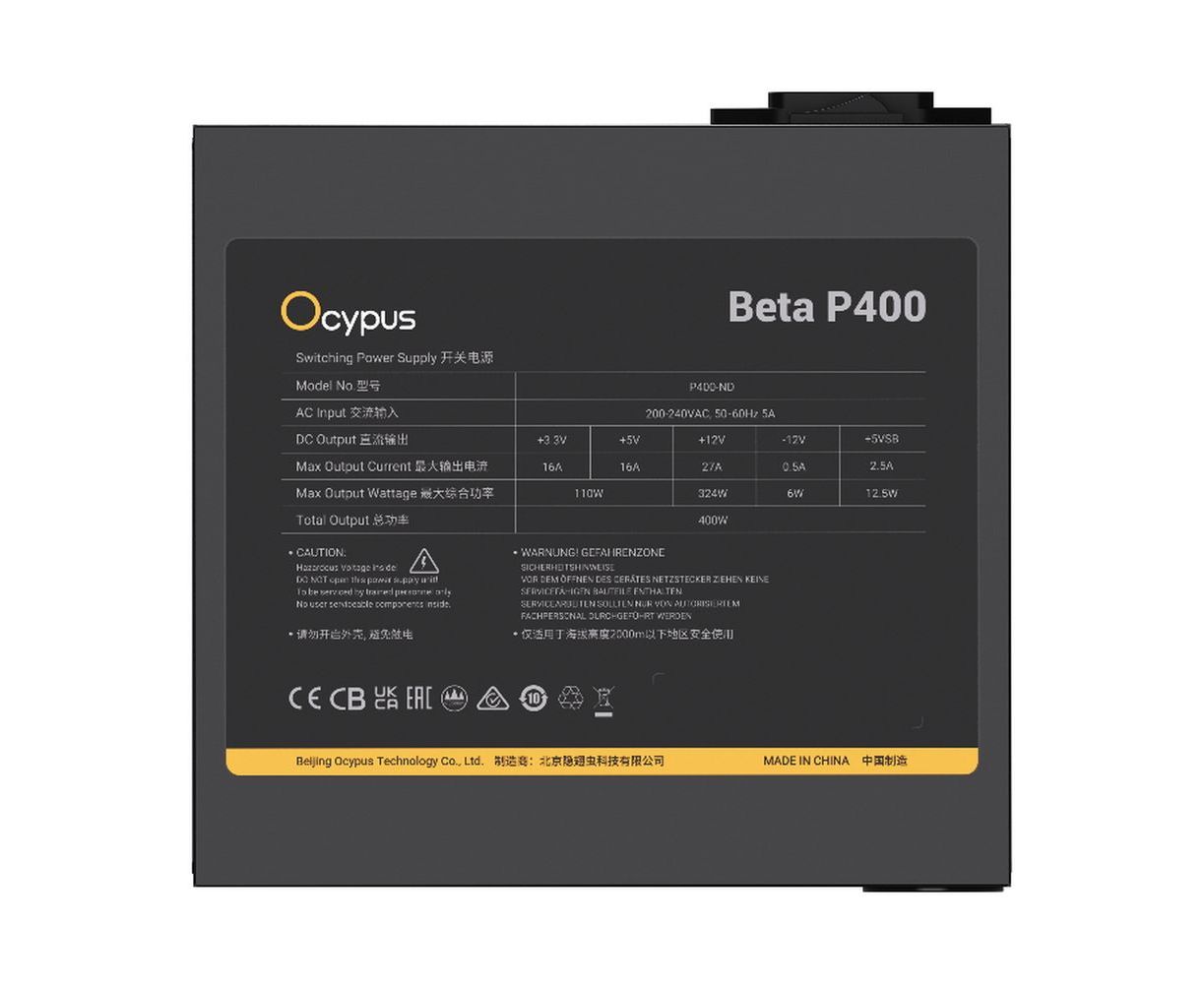Блок питания Ocypus Beta P400 BK (Beta-P400-N1HDBK024X-EU) 400W (ATX, APFC, 20+4 pin, 120mm fan, PCI-E 6+2Px2, 3xSATA)