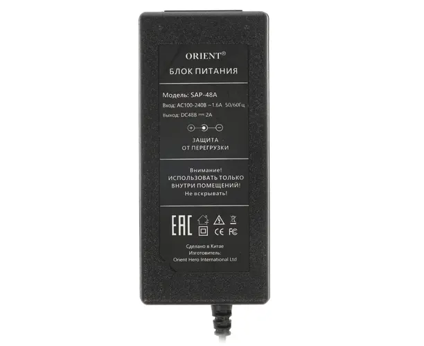 Блок питания ORIENT SAP-48A (30918), DC 48V, 2.0A, защита от КЗ и перегрузки, вилка с кабелем