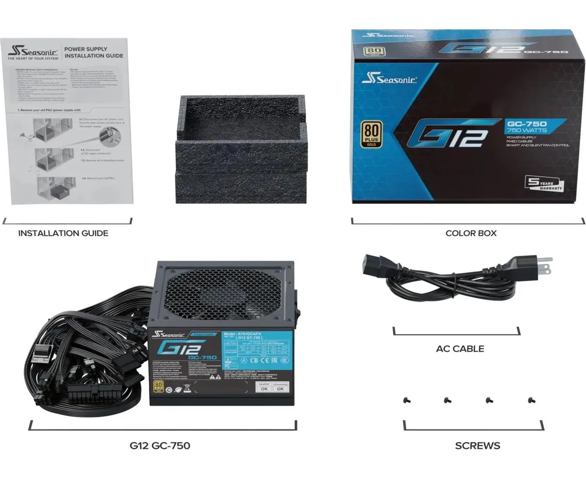 Блок питания Seasonic G12 GC-750 (g12 gc-750 ssp-750rt2), 750Вт, 120мм, черный, retail