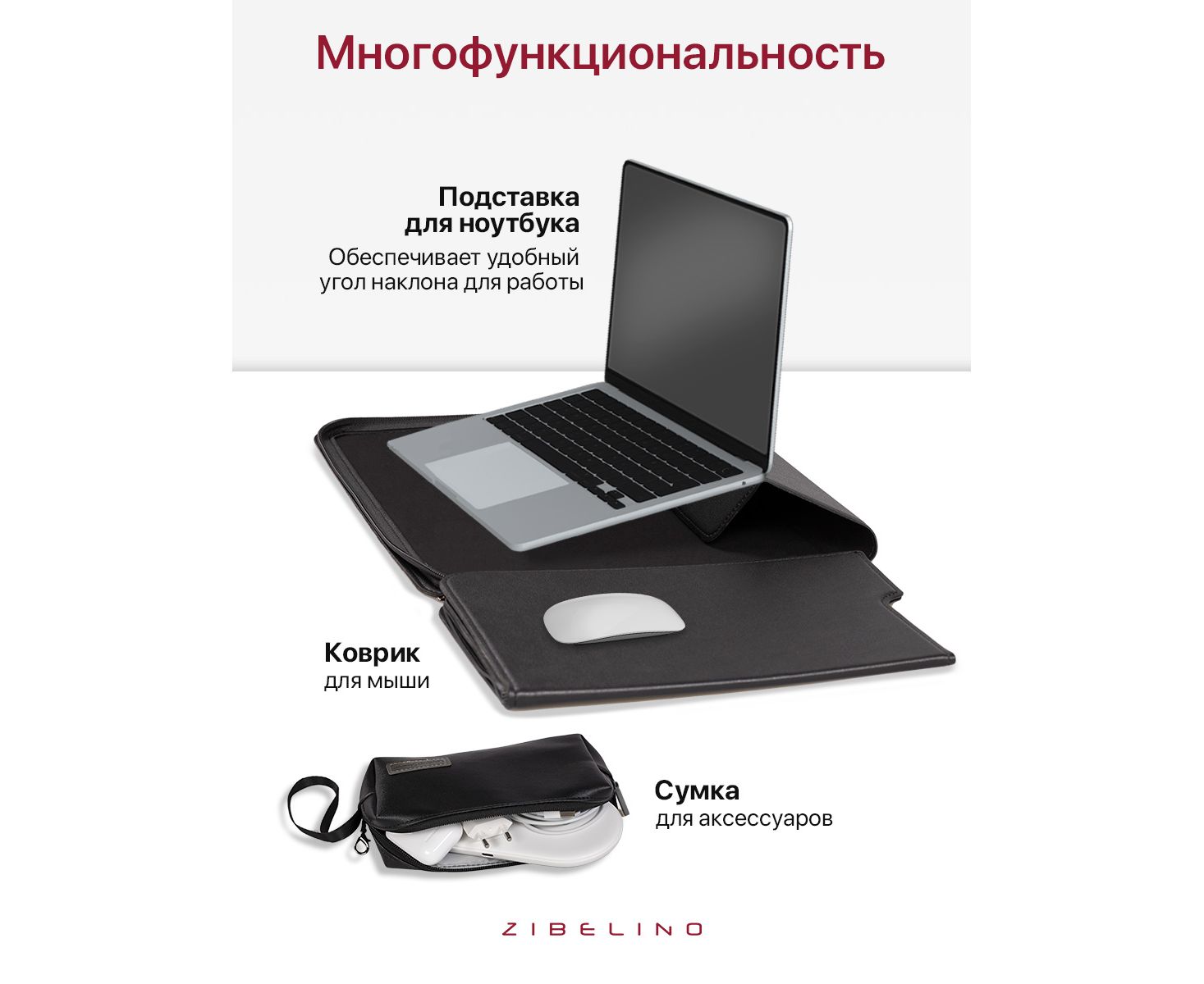 Раскладывающийся чехол подставка для ноутбука (диагональ 15-15.4") с встроенным ковриком для мыши, в комплекте с сумочкой для мышки и зарядного устройства отлично подходит для Macbook Air, Macbook Pro и для ноутбуков других брендов (Huawei, Honor, Lenovo и других).