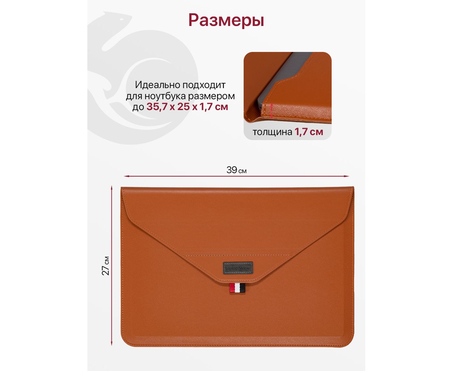 - Качественные и долговечные материалы. Папка для ноутбука изготовлена из износостойкой и приятной наощупь экокожи.