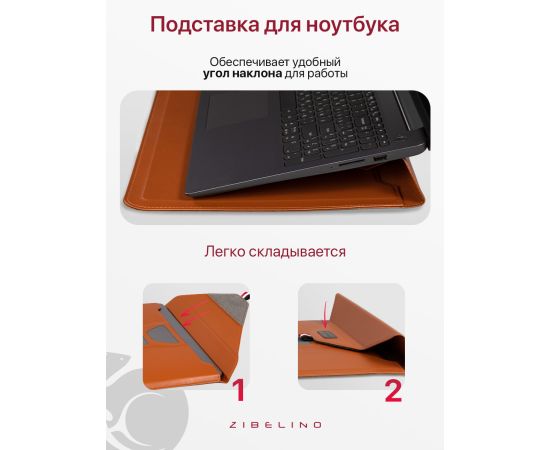 - Функция подставки для ноутбука. Для трансформации чехла прикрепите липучку на крышке к верхней застежке/ответной части на чехле. Теперь угол наклона ноутбука будет более подходящим для эргономичной работы: снижается нагрузка на запястья. Экран ноутбука располагается на уровне глаз, что существенно уменьшает напряжение в шее и спине.