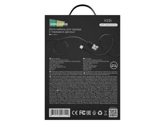 Дата-кабель USB 2.0A для Lightning 8-pin More choice K19i TPE 2м (Black)