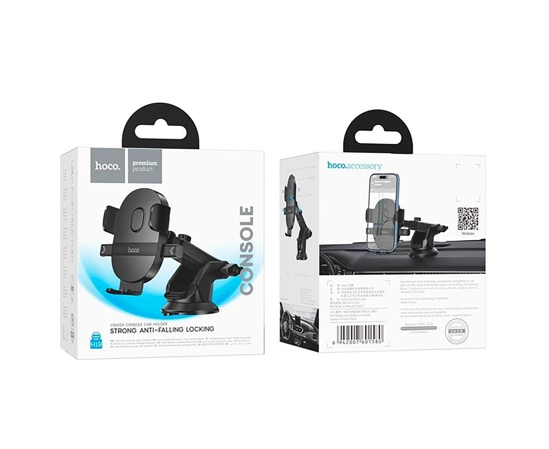 Держатель автомобильный Hoco зажим H19 Mighty лобовое стекло, приборная панель (black) (221591)