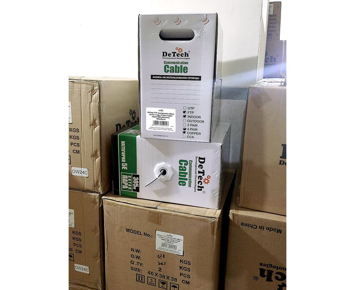 DeTech FTP внутренний кабель кат.5е 4 пары 0.5мм Copper серая ПВХ-оболочка, 305м/бухта