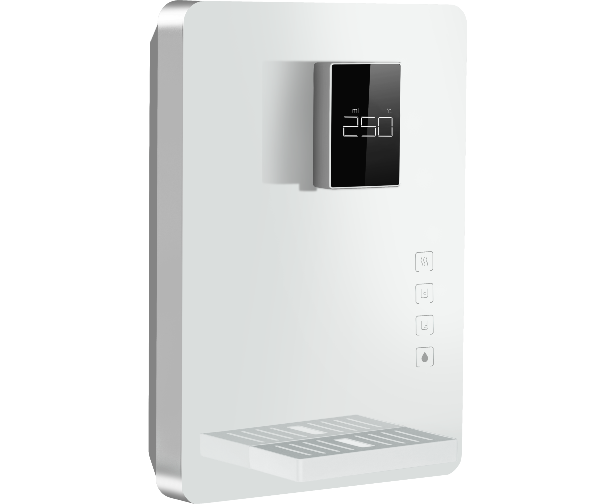 Еще одно преимущество модели — возможность выбирать объем автоподачи воды: 250, 500 или 750 мл. Если объем не выбран, разовая подача, независимо от температуры воды, по умолчанию составляет 250 мл. Аналогично в случае отключения электропитания объем воды по умолчанию возвращается к показателю 250 мл.