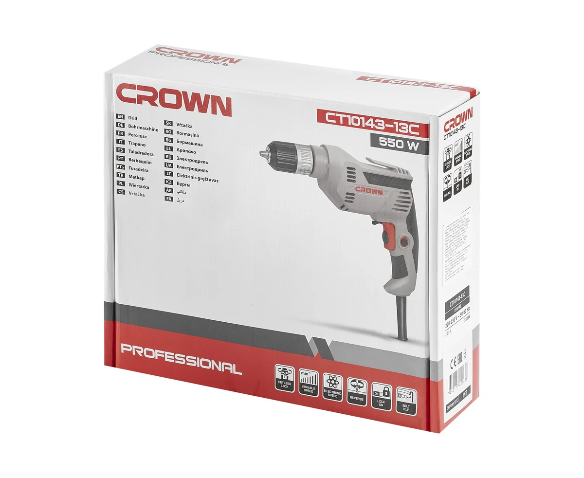 Дрель Crown CT10143-13C безударная 550 Вт