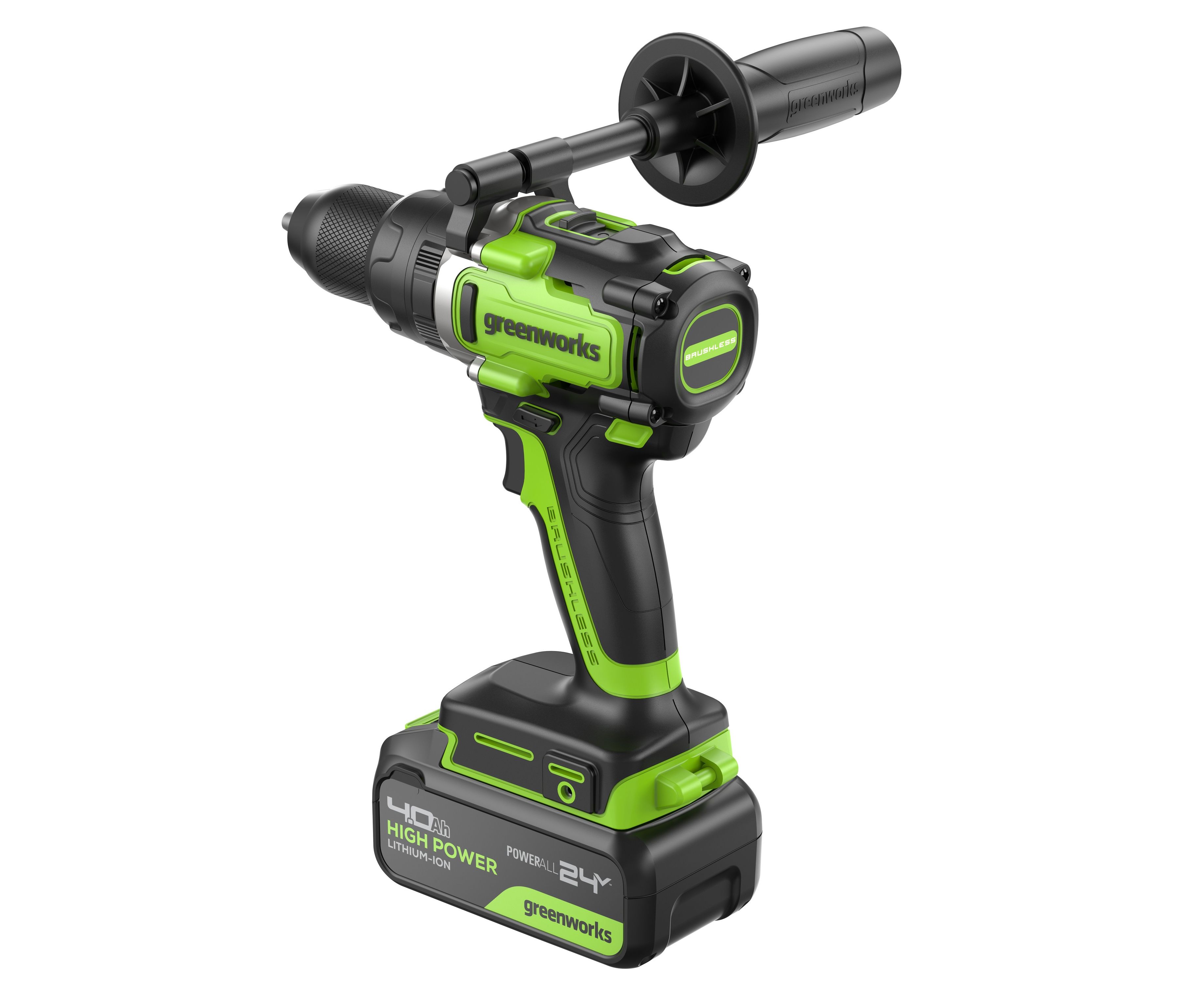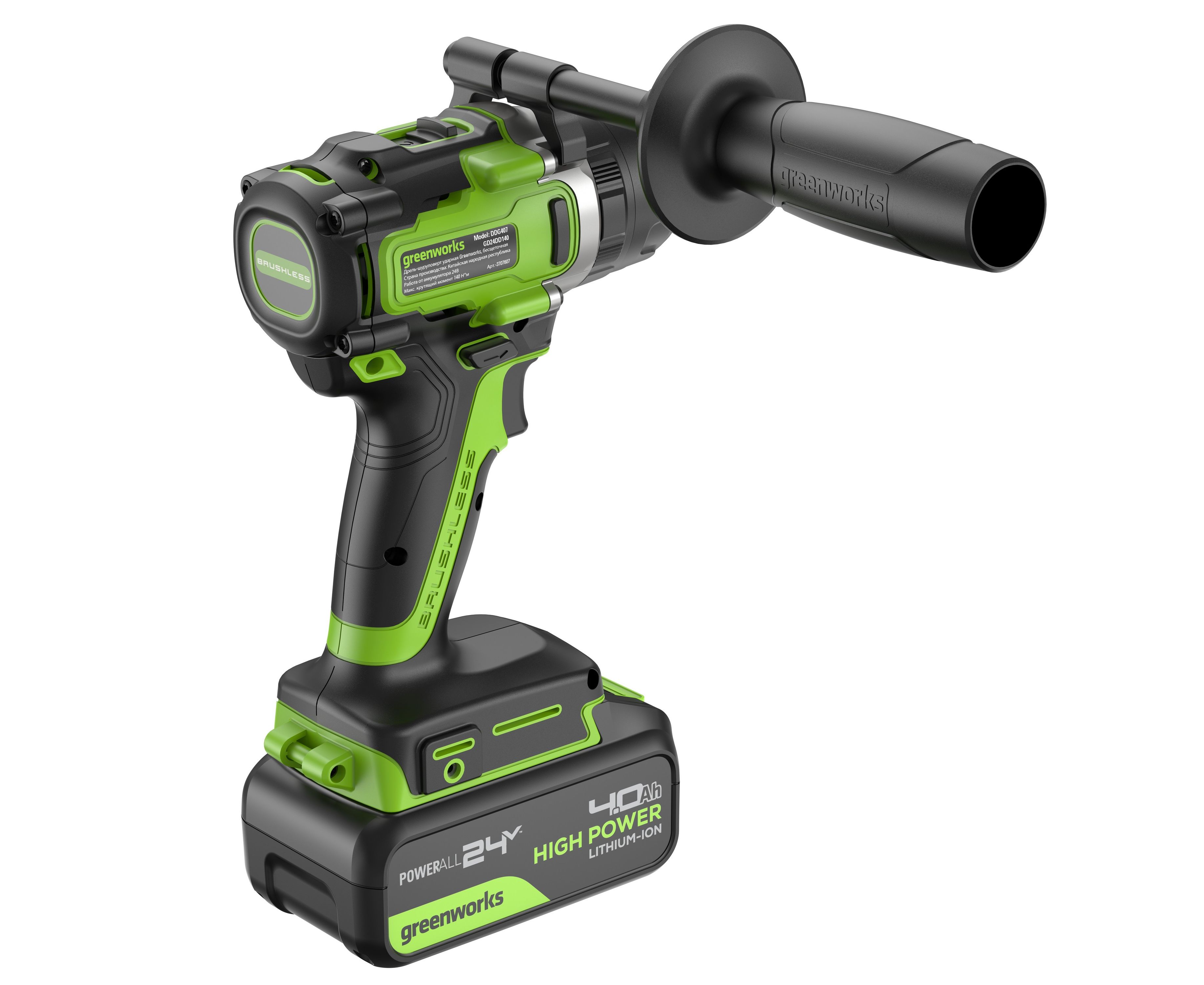 Дрель Greenworks GD24DD140 24V сочетает в себе три функции: сверление с ударом, сверление без удара и работа с крепежами. Это позволяет использовать устройство в работе с самыми разными материалами, а функция реверса дает возможность не только закручивать, но и выкручивать крепежи. Модель развивает исключительно высокий крутящий момент 140 Нм и оснащена дополнительной рукояткой для работ, требующих усилий, поэтому справится не только с бытовыми, но и с более сложными задачами