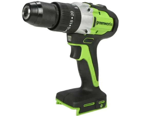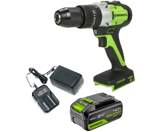Дрель-шуруповерт Greenworks GD24DD60 (3704107CUB) ударная аккумуляторная, 24V, бесщеточная, 30/60Нм, 1х4Ач, ЗУ, кор