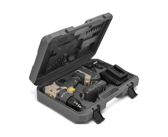 Инструмент и комплектующие удобно хранить и перевозить в прочном кейсе.