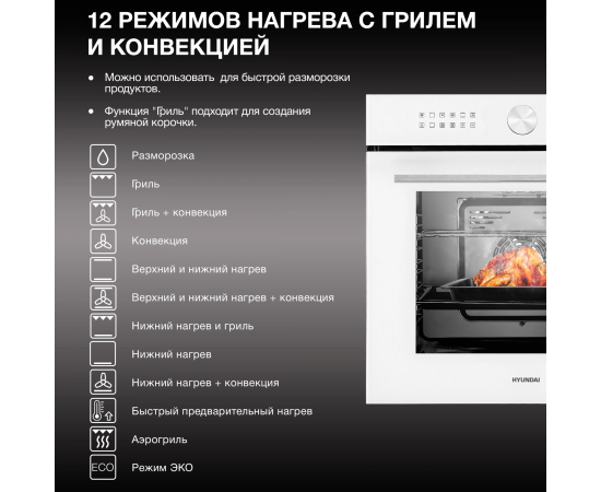 Духовой шкаф электрический Hyundai HEO 6745 WG белый