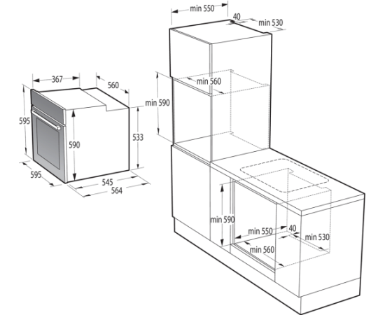 размеры ниши для встраивания: 59-60 х 56-56.4 х 55 см
