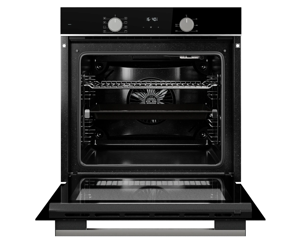Духовой шкаф MONSHER MOE 6008 Acier 60см, объем 80л, утапливаемые переключатели, механический таймер, 2 стекла в дверце, 8 режимов