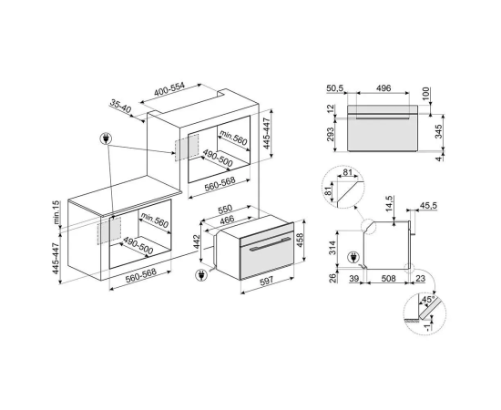 Тип установки Независимая Размеры, мм (ШхГхВ) 597x570x458 Размер ниши, мм 440x440x560 Ширина встраивания, см 44 Направление открывания дверцы Откидная Высота, см 45.8 Ширина, см 59.7 Глубина, см 57 Вес, кг 41.45 Функции Количество режимов работы 11 Особенности духовки, плиты Хромированные направляющие Системы защиты Защита от перегрева Защита от детей Да Режимы работы Гриль + нижний нагрев + вентилятор Подсветка духовки Есть Очистка духовки Очистка паром Управление Управление духовкой Таймер Тип управления Сенсорное Управление со смартфона Нет Таймер Электронный Индикация Выбранная мощность Общие Тип Духовой шкаф Дополнительные Бренд Smeg Цвет Черный, черно-серый, темно-серый