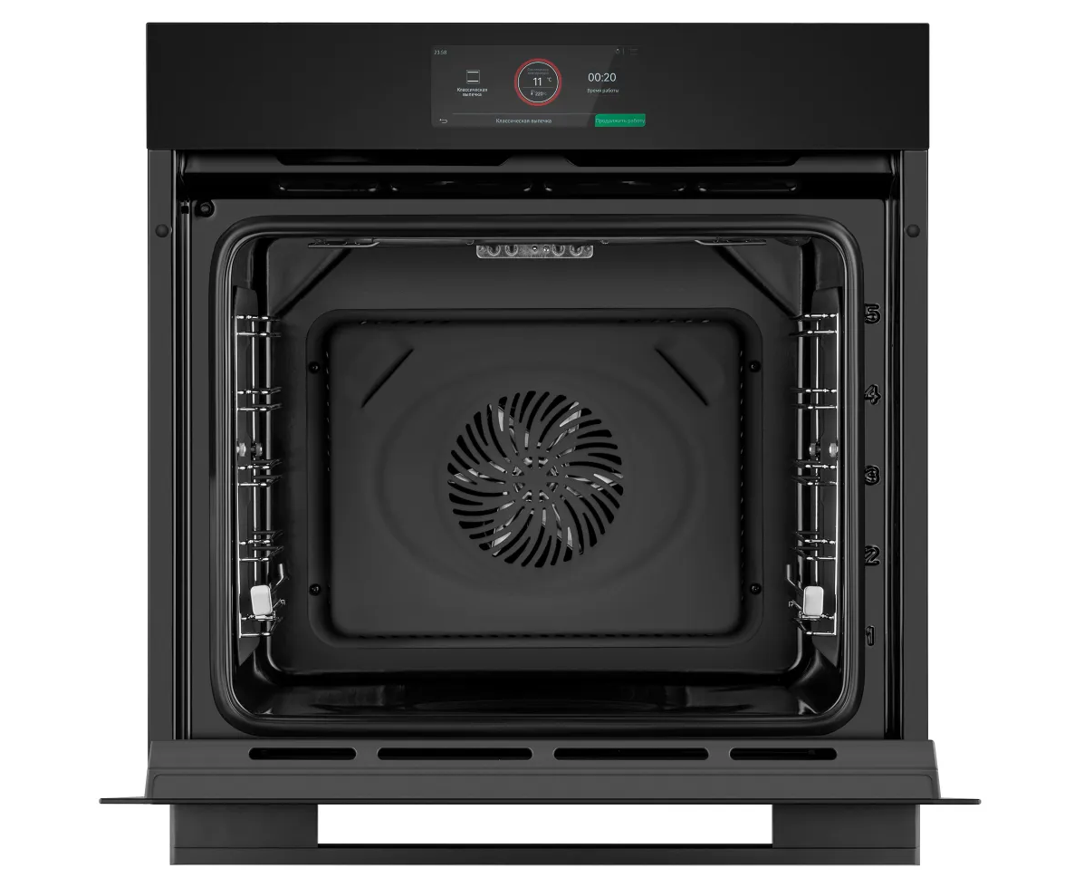 Функции: 15 функций: Классическая выпечка (верхний и нижний нагрев), Горячий воздух (конвекция), Интенсивная выпечка (нижний и верхний нагрев с конвекцией), Гриль, Двойной гриль с конвекцией, Двойной гриль, Пицца, Нижний нагрев, Верхний нагрев, Горячий воздух (ЭКО), Режим шеф-повара, Размораживание, Тесто, Сушеные фрукты, Поддержание тепла.
