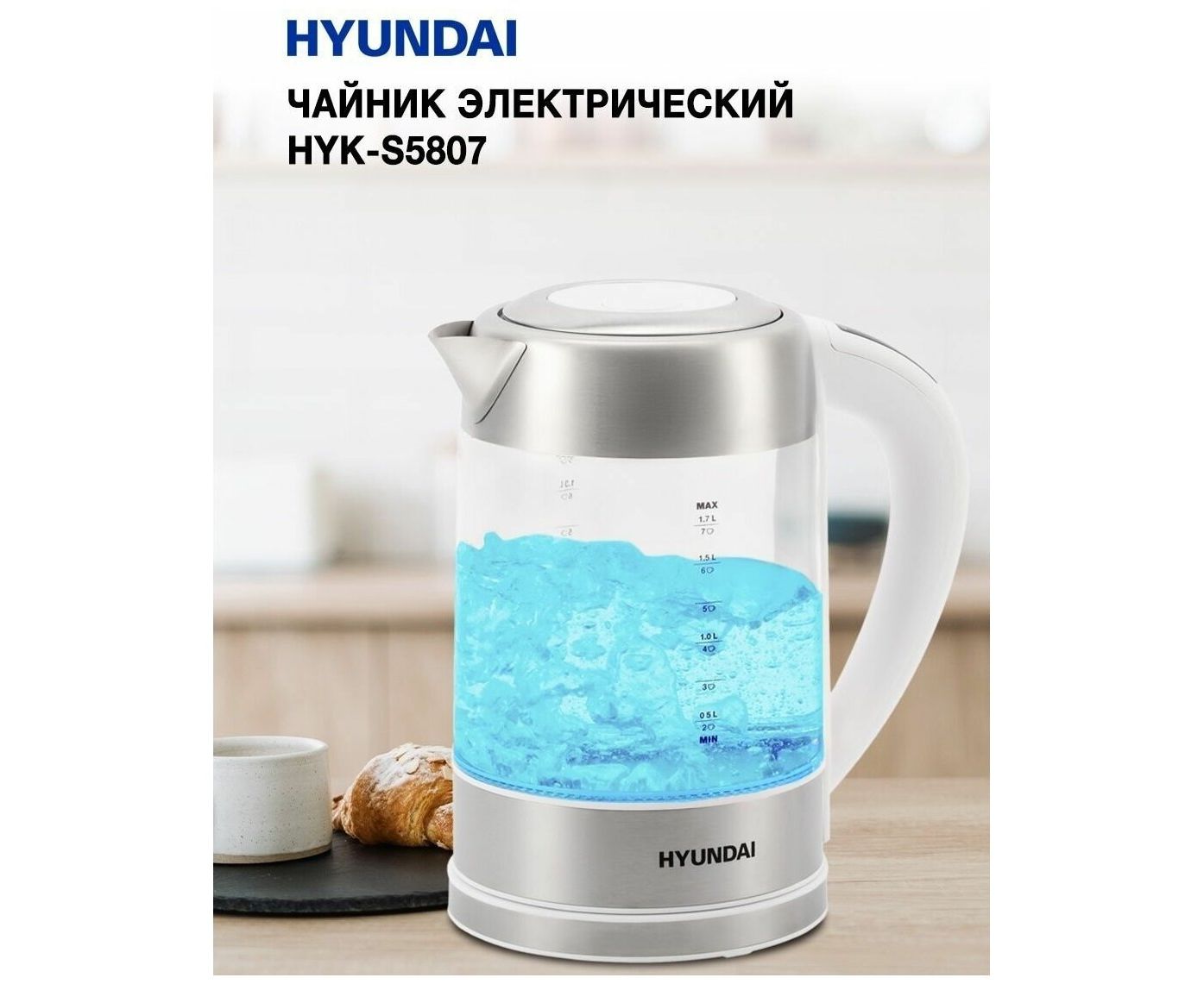 Электрочайник Hyundai HYK-S5807 белый/серебристый